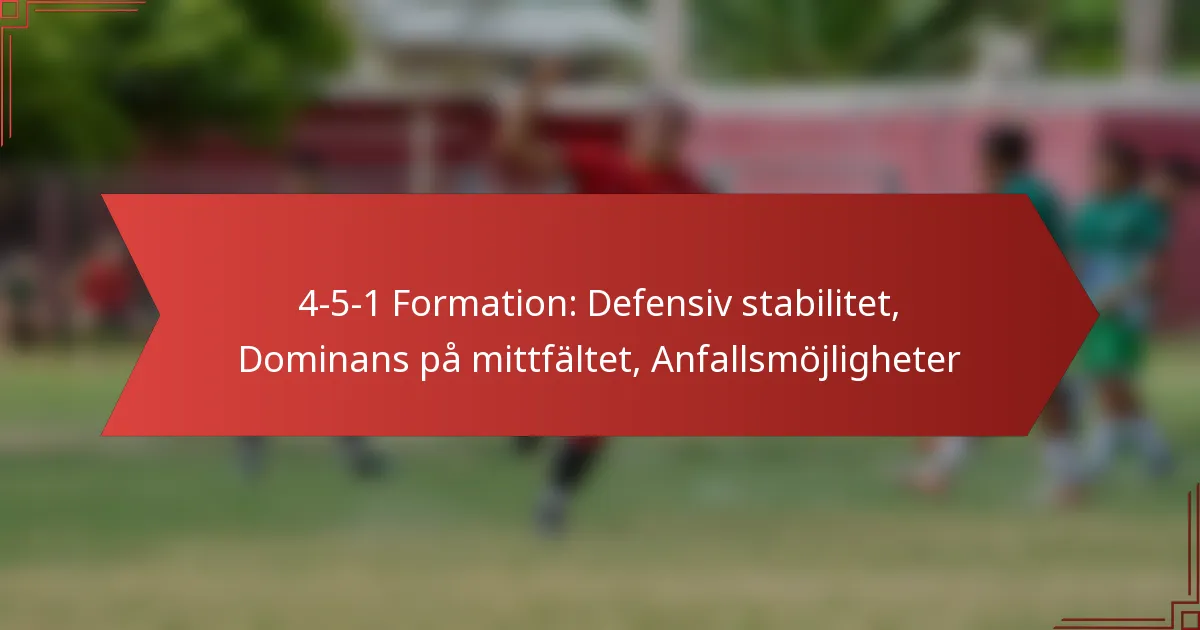 4-5-1-formationen erbjuder flera taktiska fördelar, särskilt när det gäller försvar och kontroll över mittfältet. Denna uppställning gör det möjligt för lag att upprätthålla en solid defensiv struktur samtidigt som den ger möjligheter för effektiva kontringar.